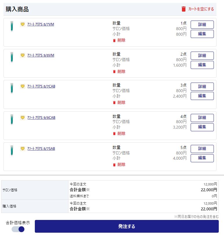 内容に問題が無ければ、最下部の【発注する】を押します。