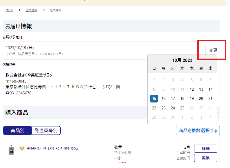 4.お届け日・お届け先を変更する